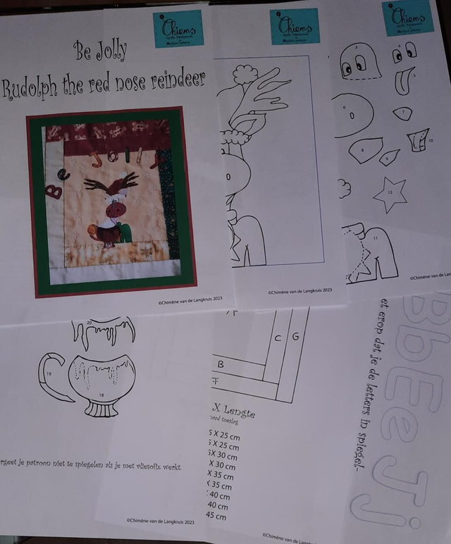 This pattern of Be Jolly Rudolphs Christmas appliqué 5 is adequate for a block size 25 cm X 25 cm.