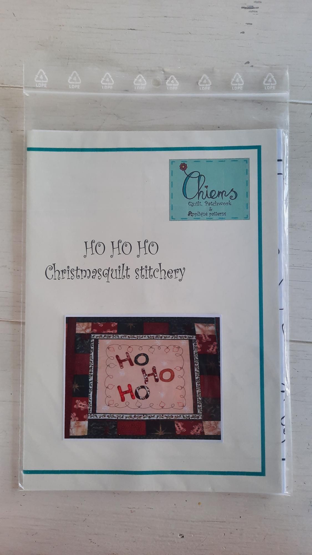 Ho Ho Ho Kerst stitchery is een leuke stitchery voor een blok van 25 cm X 25 cm.